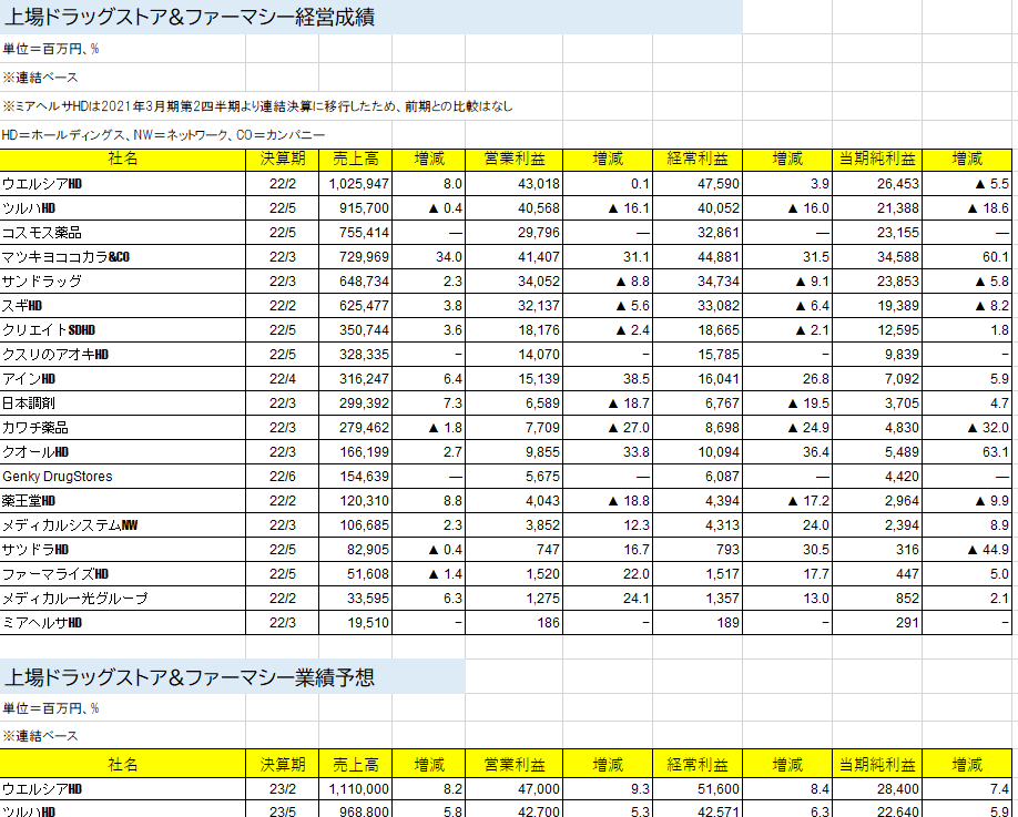 ・ドラッグストア&ファーマシー100社売上高ランキング