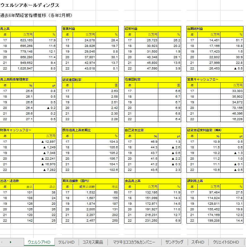 ドラッグストア スーパーデータ2023掲載データをまとめたエクセルシート集。社内共有のうえ、必要に応じ抜粋してお使いいただくことも可能です。「ドラッグストア都道府県別パワー分析」を使用して、都道府県を支社ごとにまとめてポテンシャルリストとして使用されている企業様も多いです。ダウンロード後、圧縮ファイル(ZIP形式)を解凍してご利用ください。