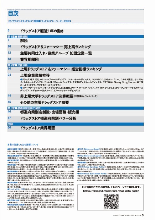 毎年、更新される「ドラッグストアスーパーデータ」はドラッグストアに携わる「業界人必須」のビジネスバイブルとして好評をいただいております。