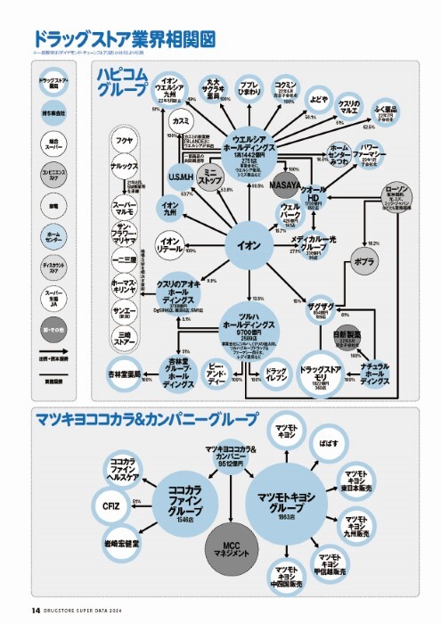 業界の1年の動き、企業売上高ランキング、主要な共同仕入れや加盟店一覧、再編著しい業界最新の相関図、企業業績や都道府県別の企業シェア、出店状況など再編著しいドラッグストア業界の動向がひとめでわかる専門誌編集部が制作したデータブックです。