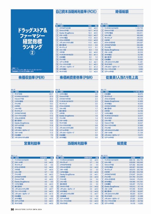 上場ドラッグストア&ファーマシー 解説/経営指標ランキング