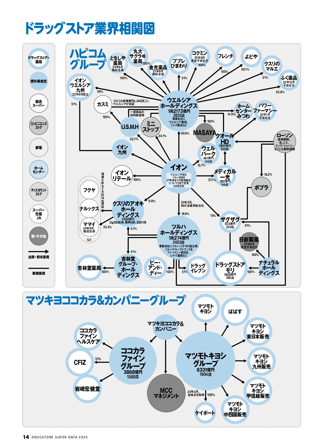 業界の1年の動き、企業売上高ランキング、主要な共同仕入れや加盟店一覧、再編著しい業界最新の相関図、企業業績や都道府県別の企業シェア、出店状況など再編著しいドラッグストア業界の動向がひとめでわかる専門誌編集部が制作したデータブックです。